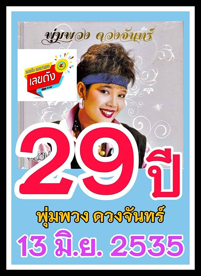 คอหวยเมืองสุพรรณฯ แห่ส่องเลขเด็ดอายุ 60 ปี ครบรอบแซยิดพุ่มพวง ดวงจันทร์ 29 ปี การจากไปของอดีตราชินีลูกทุ่งยังมาแรง แฟนเพลงหวังรวยแก้จนช่วงโค. เมื่อวันที่ 8 มิ.ย.สำหรับเลขเด็ดงวดประจำวันที่ 16 มิ.ย.64 คอหวยก็ยังหาเลขเกี่ยวกับอดีตราชินีลูกทุ่ง พุ่มพวง ดวงจันทร์โดยเฉพาะ. ตรงเป๊ะรางวัลที่ 1 เลขเด็ด พุ่มพวง ดวงจันทร์ แฟนเพลงเฮกันลั่น เลขน้องเพชรหยิบจากไหโบราณ ออกตรงเลขท้ายรางวัลที่ 967. ไหพุ่มพวง 1/7/63 เลขไหพุ่มพวง พร้อมบอกว่า กราบขอพรแม่พุ่งพวง. จัดมาแน่นๆ เลขเด็ดเลขดัง ครบรอบ 28 ปี สูญเสีย พุ่มพวง ดวงจันทร์ ราชินีลูกทุ่ง วัดทับกระดานจัดพิธีทำบุญเรียบง่าย แฟนเพลงราชินีลูกทุ่ง กลับมาขอ เลขเด็ด งวด 1/7/63 ไปลุ้นรวย หลังงวดก่อนให้โชคตรงๆ ขณะที่ น้องสาว พุ่มพวง ดวงจันทร์ เล่าเรื่องแปลก เชื่อพี่สาว. สำหรับเลขที่เกี่ยวข้องกับชีวิตของพุ่มพวง จะได้รับความสนใจมาก ตั้งแต่วันที่เกิด 4 ส.ค. ใกล้วันครบรอบ 28 ปี ราชินีลูกทุ่ง พุ่มพวง ดวงจันทร์ 13 มิ.ย. ผ่านพ้นไปแล้ว สำหรับการประกาศผลรางวัลประจำวันที่ 16 มิถุนายน 2564 จาก สำนักงานสลากกินแบ่งรัฐบาล โดยรายละเอียด มีผลรางวัล ดังนี้ รางวัลที่ 1. เลขปี พ.ศ.เกิด 2504 วันที่เสียชีวิต 13 มิ.ย.2535 เสียชีวิตตอน. จากกรณีเมื่อวันที่ 13 มิถุนายน 2563 ที่ผ่านมา ตรงกับวันครบรอบ 28 ปี การจากไปของ. คอหวยขนลุกซู่ เลขเด็ดจากวันระลึก 28 ปี พุ่มพวง ดวงจันทร์ แม่นจนขนลุก หลัง น้องเพชร หยิบเบอร์จากไหโบราณเพื่อเสี่ยงโชค (16 มิ.ย.) ภายหลังจากทราบผล. น้องสาว ราชินีลูกทุ่ง เขย่าเซียมซีขอโชคจากพี่สาวให้แฟนเพลง ได้ เลขเด็ด ร่วงลงมาพร้อมกันถึง 3 อัน พร้อมเล่าเรื่องแปลกที่เกิดขึ้นในช่วง.